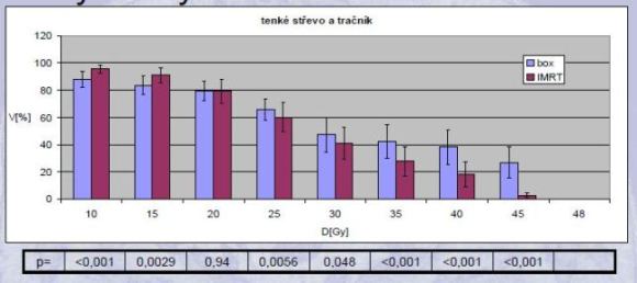 - Mundt 2003: redukce chronické GI toxicity (11% vs. 50%, p=0,001), Follow-Up = 30M