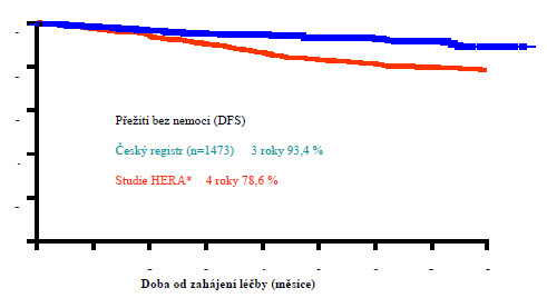Časný HER2-pozitivní karcinom prsu: přežití bez nemoci (DFS) při léčbě Herceptinem