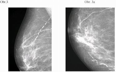 3. Pacientka M.M. 71 let. Mammografický obraz je doložen na