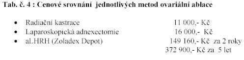metod ovariální ablace(Tab.č. 3) zůstává otevřených, zejména otázka