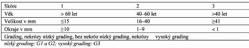 Tab. 1. Modifikovaný Van Nuys prognostický index/USC: (VNPI) + věk