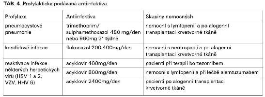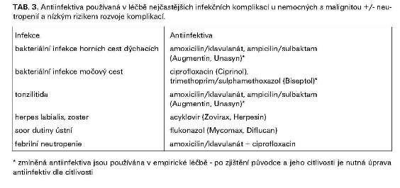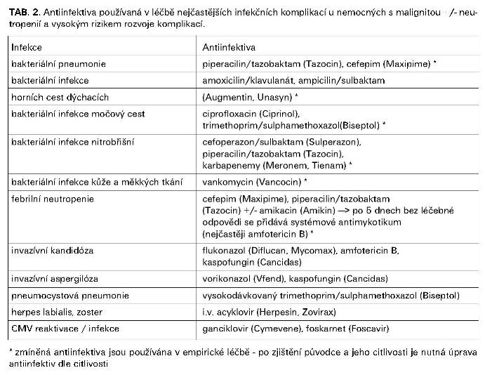 Antiinfektiva používaná v léčbě a profylaxi nejčastějších infekčních komplikací u nemocných s malignitou jsou uvedena v tabulkách č. 2-4.