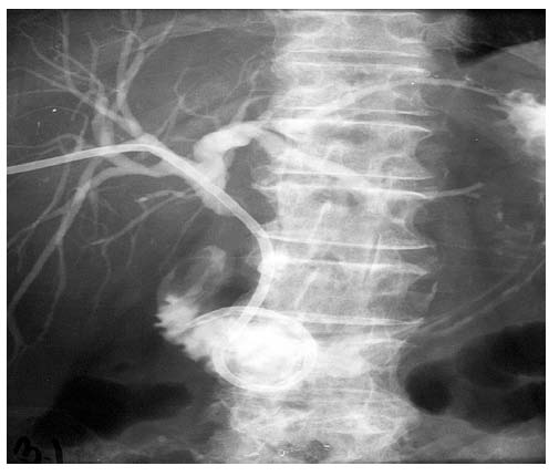 Provedená zevně-vnitřní drenáž žlučových cest u pacienta s maligní stenosou