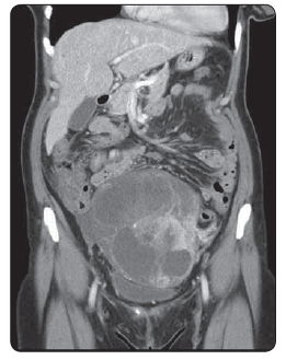 50letá pacientka, dosud interně nestonající, bez onkologické rodinné anamnézy, byla přijata na GPK FN Plzeň pro měsíc trvající bolesti břicha. Pro nález cystického útvaru na levém ovariu byla provedena hysterektomie s oboustrannou adnexektomií. Histologie útvaru vycházejícího z appendixu a prorůstající do ovaria byla IHC pozitivní na AE1/ 3 a chromogranin. V druhé době byla provedena pravostranná hepatektomie pro metastatické postižení. U pacientky bylo v plánu podání systémové léčby, ale v první době bylo nutné dořešení nálezu megaureteru vpravo. Indikována nefrektomie. Nově se objevili potíže charakteru exophtalmu a deprese bulbu levého oka. Provedeno kontrolní CT orbity s nálezem expanze charakteru metastázy v levé očnici. Následně provedeno CT břicha s nálezem masivní generalizace v průběhu colon ascendens a hepatálního ohbí, lymfatických uzlin retroperitonea, podél pánevních svazků vlevo a na resekční ploše jater. Při maximálních obtížích způsobených metastázou v orbitě byla indikována konkomitantní chemoradioterapie. Zahájena systémová léčba kapecitabinem a pro karcinoidové projevy zahájena léčba lanreotidem. Přes provedenou léčbu lokální nález progredoval a objevily se bolesti, které si vyžádaly léčbu opiáty. Pacientka umírá sedm měsíců od operace.