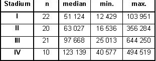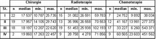- náklady na chirurgickou léčbu jsou u všech stádií téměř identické
