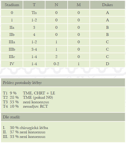 - u pacientů s nádory ve stadiu II/III (dobře či středně diferencovanými, s méně než 2mm perirektální tukovou invazí, absencí lymfatického či žilního postižení) velmi příznivé výsledky 5leté rekurence (4-10 %) bez RT. (Willett, Merchant, Gunderson, Cecil TD, Heald RJ, Bokey EK…);