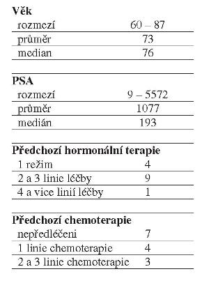 pacientů, částečná odpověd s poklesem PSA o více než 50% u 7