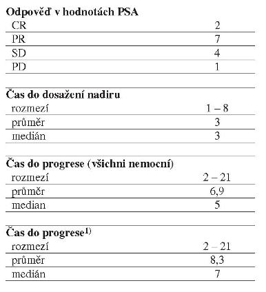 Kompletní léčebná odpověd s normalizací PSA byla pozorována u 2