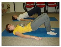 poradí) a súčasne zdvihnúť chrbát od podložky do mostu. Chrbát