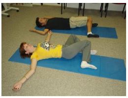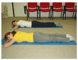 zakláňa hlava, podložíme ju malou poduškou. Cvik opakujeme 10 -15x.