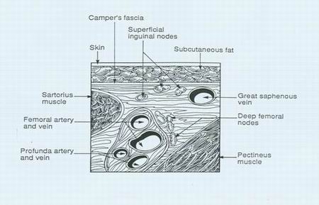 - většina drenována do inguin -superficiální-hluboké-iliaca
