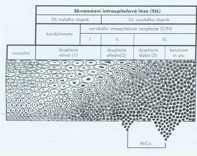 průměrný věk prekancerózou: 34 let, s mica: 44 let - LG SIL spontánně regredují v 40-80 %,