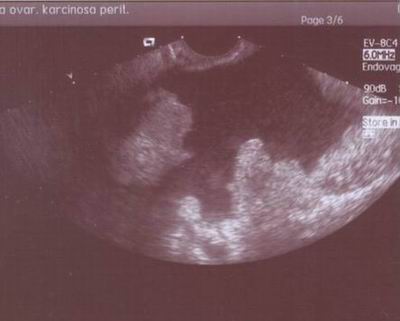 - V pokročilých stádiích: bolesti břicha, příznaky z invaze do moč. měchýře a střeva, výjimečně vesikovaginální fistule.
