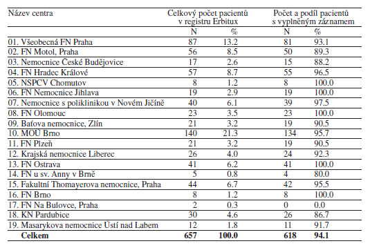 K tomuto datu je v registru Erbitux 657 pacientů, z toho u 618 pacientů je dostatečně vyplněný záznam.