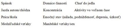 vaše denné činnosti (napr. jedenie, prácu, spánok, sociálne a