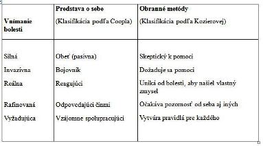 Vnímanie bolesti, predstava pacienta o sebe a obranné metódy