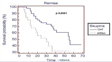 - Vyšší počet relabujích pacientů ve skupině s erbituxem (56% vs. 44%)
