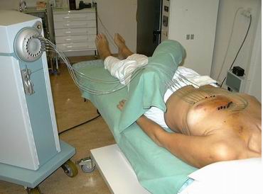 Nejčastěji se používá pro doozáření lůžka nádoru elektronový svazek (obr.4). Jeho výhodou před intersticiální brachyterapií je snadné použití, nízká cena a excelentní výsledky srovnatelné s brachyterapií. Radiační onkologové, kteří preferují brachyterapii, poukazují na snížení dávky na kůži a potenciální radiobiologické výhody této metody .