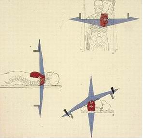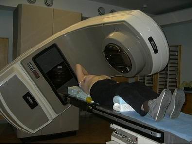 Nepravidelný konický tvar prsní žlázy společně s tvarem hrudního koše a s blízkostí řady radiosenzitivních struktur - plic, srdce - je předpokladem pro značně složitou proceduru plánování RT. Dnes již by mělo být zcela standardní plánovací CT vyšetření a trojrozměrné (3D) plánování. Poměrně značným problémem je zajištění vhodné a reprodukovatelné polohy pacientky. Existuje celá řada pomůcek včetně polohovacího klínu, držáku horní končetiny, termoplastové fixace hrudníku apod (obr.5). Žádná z nich ovšem nezajistí zcela shodnou a přesnou polohu pacientky během celé ozařovací série.