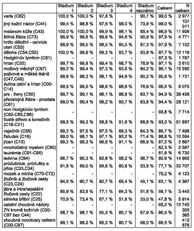 Tabulka 1. Typologie záznamů NOR všech zhoubných novotvarů (C00-C97) dle úplnosti údajů o stadiu onemocnění - období 2001-2007.
