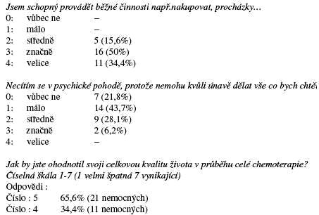32 nemocných odpovídalo na řadu vybraných otázek z dotazníku FACIT-stupnice únavy.