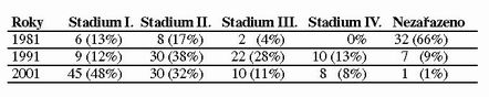 Počty nemocných v jednotlivých stádiích onemocnění reprezentující vývoj diagnostiky jsou uvedeny ve vybraných letech v tabulce 1.