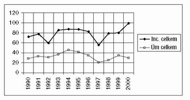 2001 36 nemocných. Srovnání incidence a mortality za posledních 20 let je uveden v Grafu 1.