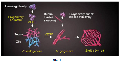 Hlavním mediátorem nádorové angiogeneze je růstový faktor cévního endotelu (Vascular Endothelial Growth Factor – VEGF) aktivující tyrozinkinázové receptory na povrchu endotelových buněk. (Obr. 1)