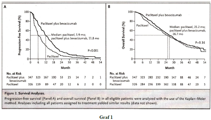 Na Onkologickém oddělení Nemocnice České Budějovice, a.s. jsou nyní léčeny 4 pacientky v 1. linii s metastazujícím karcinomem prsu. Z toho 2 pacientky jsou léčeny více jak 1 rok. Zbylé 2 pacientky zahájily léčbu v září 2013. Pacientky dostávají následující léčebný režim: weekly paklitaxel 80mg/m2 + Avastin 10mg/kg á 14 dní