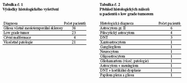 peroperační kortikografií. Přehled výsledků histologického