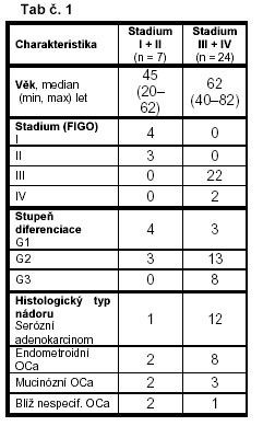 Ve skupině pacientek s ovariálním karcinomem (n=31) jsme zjistili