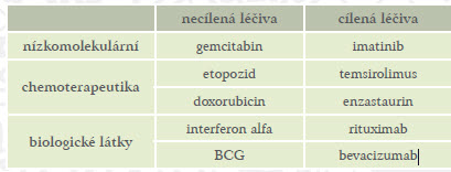 Tabulka 1: Příklady cílených a necílených léčiv v kategorii nízkomolekulárních a biologických látek