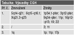 Diskuze: U všech tří dětí s feochromocytomem jsme detekovali deleci postihující 11p (dvakrát pouze 11p a jednou celého 11. chromozomu) a delece 1p a části 3p respektive celého 3. chromozomu byla u dvou pacientů. Ztráty 1p a 3q patří k nejčastějším změnám nacházeným u feochromocytomů dospělých (2, 3, 4, 5). Různé změny v oblasti 11. chromozomu (del 11p nebo 11q, zmnožení 11q) a del 17 p jsou udávány převážně u maligních forem feochromocytomů dospělých (3, 4). My jsme nalezli deleci 11p u dvou a celého 11. chromozomu u třetího z našich pacientů a u jednoho navíc deleci 17p přestože neměli známky malignity (metastázy). Otázkou je, zda metastázy nebyly přítomny, protože onemocnění bylo zachyceno relativně včas. Druhou možností samozřejmně je, že genetické změny u dětských feochromocytomů se mohou lišit od změn nacházených u dospělých. Řada nádorů, které jsou typické pro dospělý věk, ale vzácněji se vyskytnou i u dětí, má v obou těchto věkových skupinách odlišnosti biologické, klinické i genetické. Největší počet genetických změn byl nalezen u chlapce s mutací genu VHL a oboustranným feochromocytomem. Pokud je nám známo námi prokázaná mutace dosud nebyla u von Hippel Lindauova syndromu popsaná. Práce vznikla za finanční podpory VZ MŠMT 0021620813 a grantu IGA NC/7441-3.