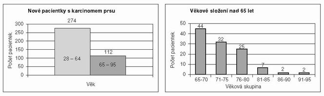 Proto jsme se rozhodli provést pilotní retrospektivní rozbor onkologické léčby pacientek s karcinomem prsu starších 65 let, které u nás byly nově léčeny v roce 2003.