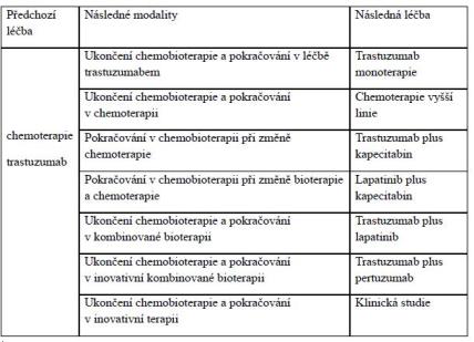 Tabulka Možnosti další léčby nemocných s metastazujícím HER-2 dependentním karcinomem prsu předléčených trastuzumabem