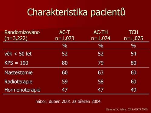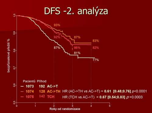 - Kombinace chemoterapie a biol.léčby trastuzumabem významně prodlužuje období bez příznaků(DFS) a celkové přežití(OS) ve srovnání se standardní adjuvantní chemoterapií u nemocných s HER2+ časným karcinomem prsu