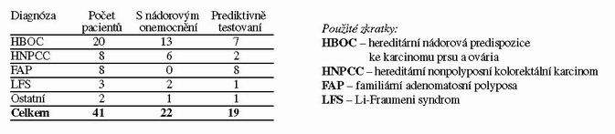 Prezentujeme rodiny čtyř dětských pacientů, u nichž byl diagnostikován nádor choroidálního plexu ve velmi nízkém věku a zároveň jsme u nich nalezli zárodečnou mutaci genu TP53. Nádor choroidálního plexu patří kvelmi vzácným nádorům s incidencí 0,3/1000000/rok. Tvoří 0,4 – 0,8% všech mozkových nádorů a asi 1% mozkových nádorů dětského věku. Naše výsledky podporují domněnku, že tento vzácný dětský nádor, zvláště tehdy, vyskytne-li se u pacienta s pozitivní rodinnou nádorovou anamnézou, by mohl být důležitým indikátorem zárodečné mutace genu TP53. Rozpoznání tohoto genetického defektu má velký význam pro prevenci nádorových onemocnění u probanda i jeho příbuzných, kteří mají (v případě nosičství této mutace) zvýšené riziko rozvoje nádorového onemocnění. Přítomnost mutace genu TP53 u pacienta s nádorem choroidálního plexu by též měla ovlivnit rozhodování o strategii léčby.