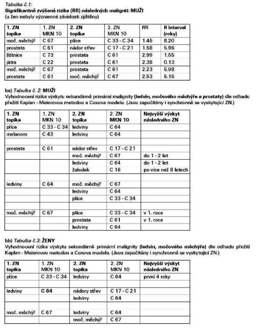 - Zůstává však doporučit specialistům v oboru onkologie, aby dle výše uvedených výsledků za účelem včasného záchytu následné malignity prováděli nejen lokoregionální vyšetření, ale vyšetření též s ohledem na možný výskyt následné malignity, a to po dobu delší než 5 let od zjištění primárního nádoru (optimálně cca 8 let).