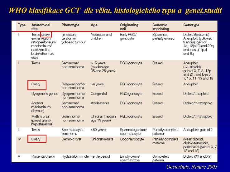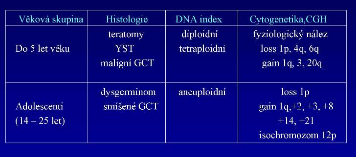Cytogenetická charakteristika ovariálních GCT dle věku a histologie