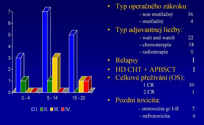 - Chemosenzitivita: chemosenzitivní, vzor vyléčitelného nádoru kurabilní více než 85%
