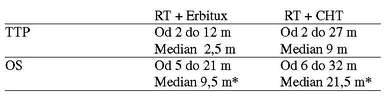 Z retrospektivní analýzy naší léčby je zřejmé, že kurativní radioterapie konkomitantně s chemoterapií event. s biologickou léčbou v terapii pokročilých nádorů hlavy a krku má dobrý efekt s přiměřenou toxicitou a pacient nemusí podstoupit mnohdy mutilující operaci. Z 23 léčených pacientů u 74% bylo dosaženo kompletní odpovědi a u 56,5% tato odpověď dosud trvá s mediánem 9 měsíců*.