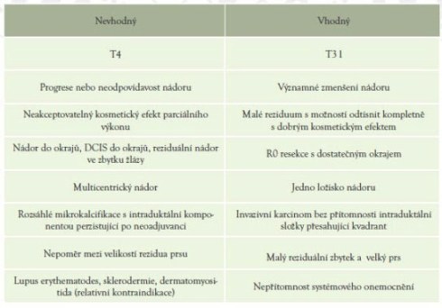 vhodný prs šetřící chirurgický výkon (Tabulka 1).