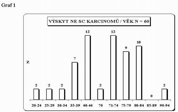 Incidence karcinomu mléčné žlázy ve věkové skupině 20-34 byla zaznamenaná rovnoměrně. Prudký vzestup incidence byl již zaznamenán ve věkové skupině 35-39 let. Karcinomy ve věkové skupině 35 – 40 let věku byly zaznamenány u 19 žen – to je 31, 66% z počtu celkově prokázaných karcinomů v souboru ne screeningových žen (N=60).