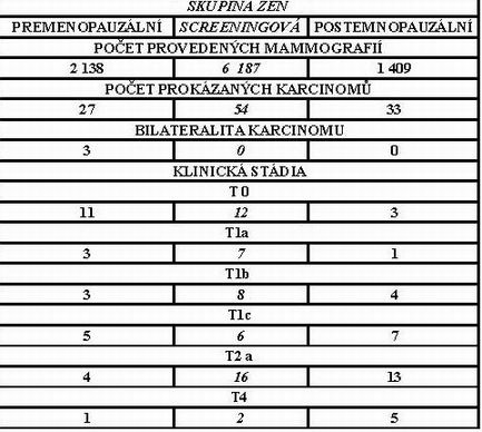 - Pouze 16 karcinomů ne screeningové skupiny bylo hmatných (26,7%).