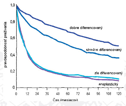 Prežívanie v závislosti na histopatologickom gradingu je uvedené na obrázku 1.