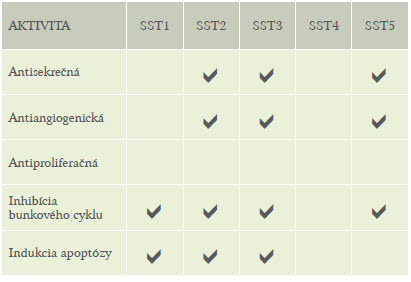 Tabuľka 3: Aktivity piatich známych podtypov SST Receptorov