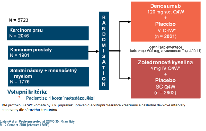 Design byl obdobný – pacienti s kostními MTS v 1 rameni s denosumabem proti rameni se zoledronátem v podání q4w.