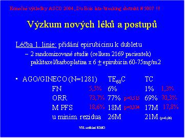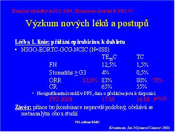 - ZD1839 (gefitinib) v kombinaci s PTX/CBDCA: 2CR/17, 4PR/17 (ORR 35%) u Pt rezistentních ORR 72,3% u Pt senzitivních