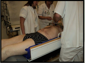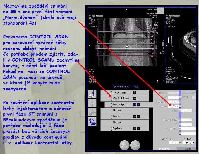 pozici, připojíme pacienta na tlakovou stříkačku s kontrastní