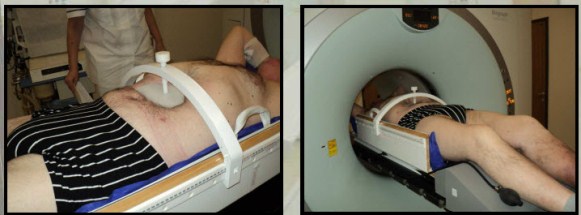 ozařování pacienta, tudíž je uložen ve fixačním vaku a oblast